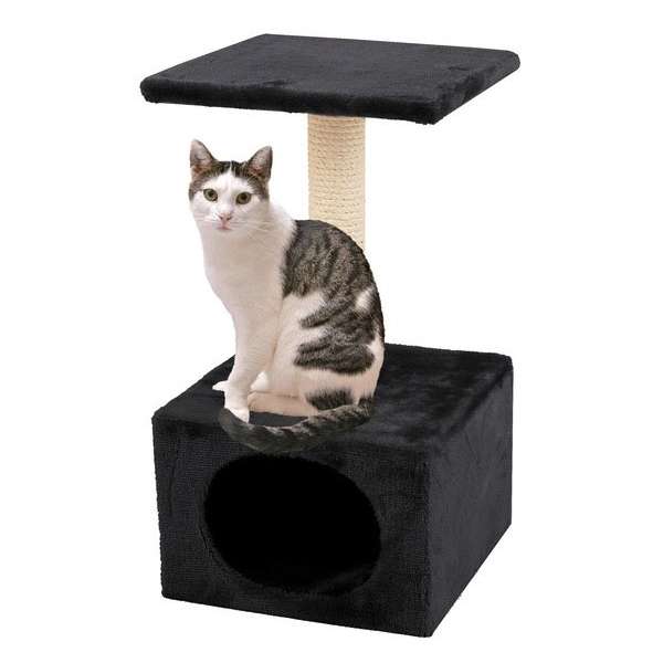 Die Platte und die Höhle, die mit Plüsch bezogen sind, und der Sisal-Kratzstamm bieten sowohl einen weichen Schlafplatz, als auch eine gute Möglichkeit zum Krallenschärfen.